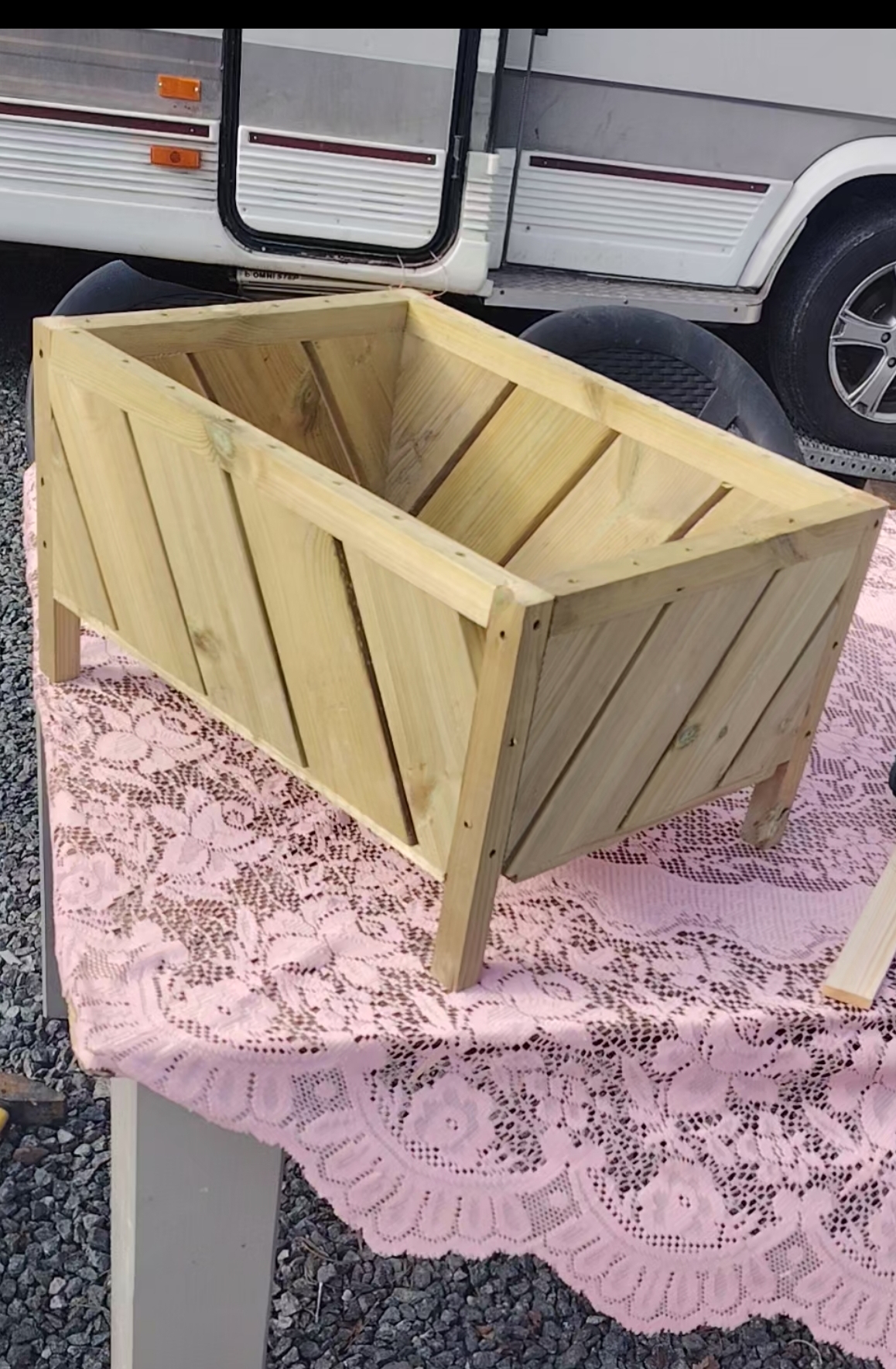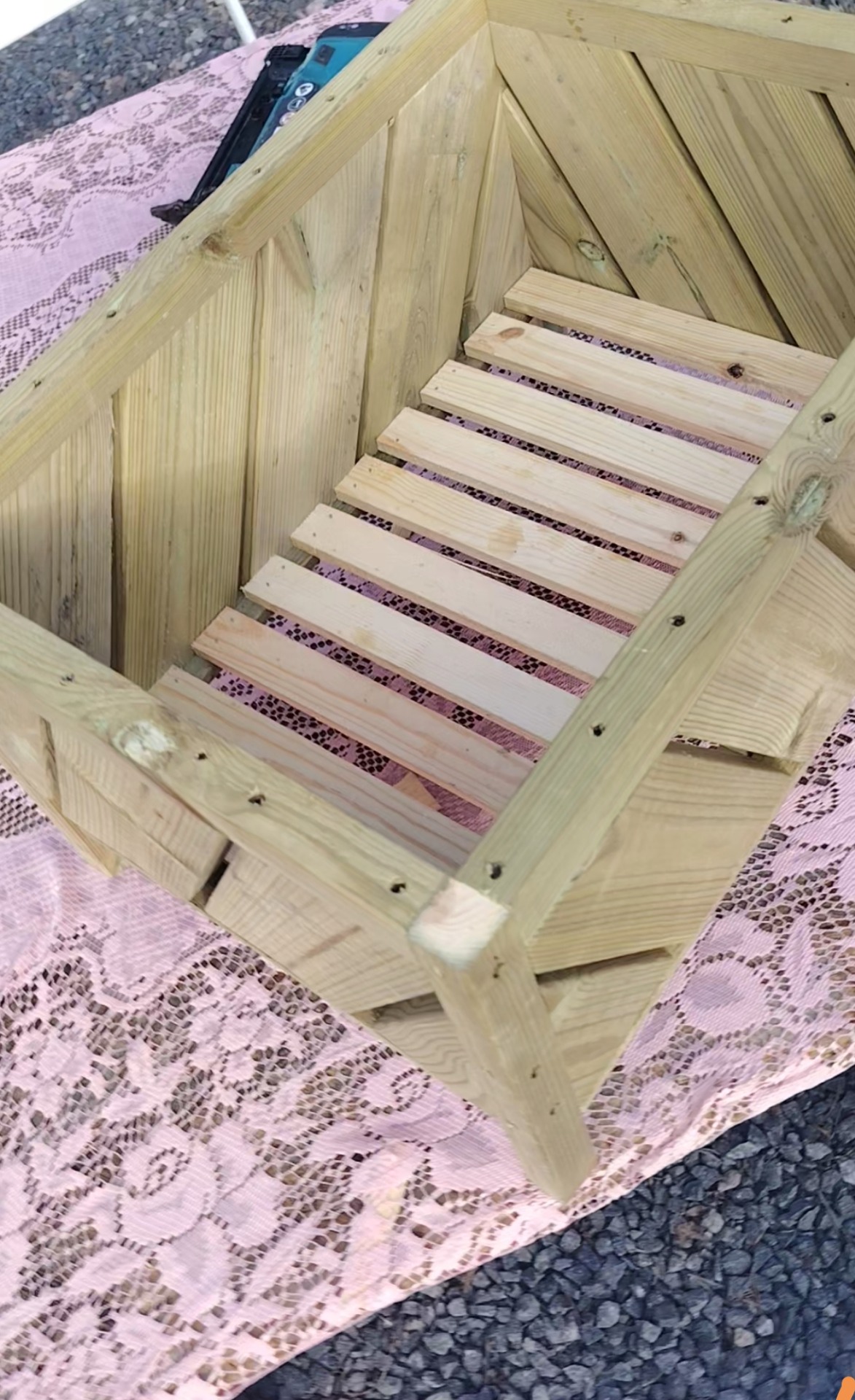 Painekyllästetty kukkalaatikko rimapohjalla